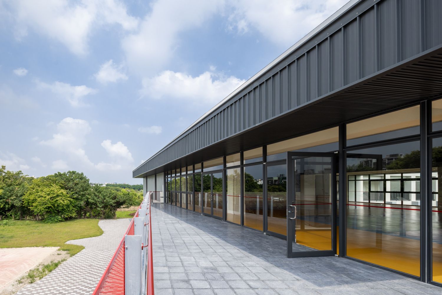 本案是位於新竹市水源國小校區內的活動中心,工程總經費7570萬是一座地上2層的建築,總樓地板面積是1894m2共容納了2座羽球場、1處表演舞台與3間多功能教室。水源國小位於新竹市區與郊區的邊界,建築基地在校園的北側緊鄰著地界線,周邊是視野開闊的田園風景,舊址是既有幼兒園的遊戲場,也是校園中教室通往戶外操場的主要動線。