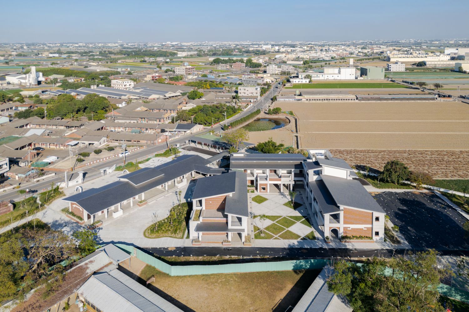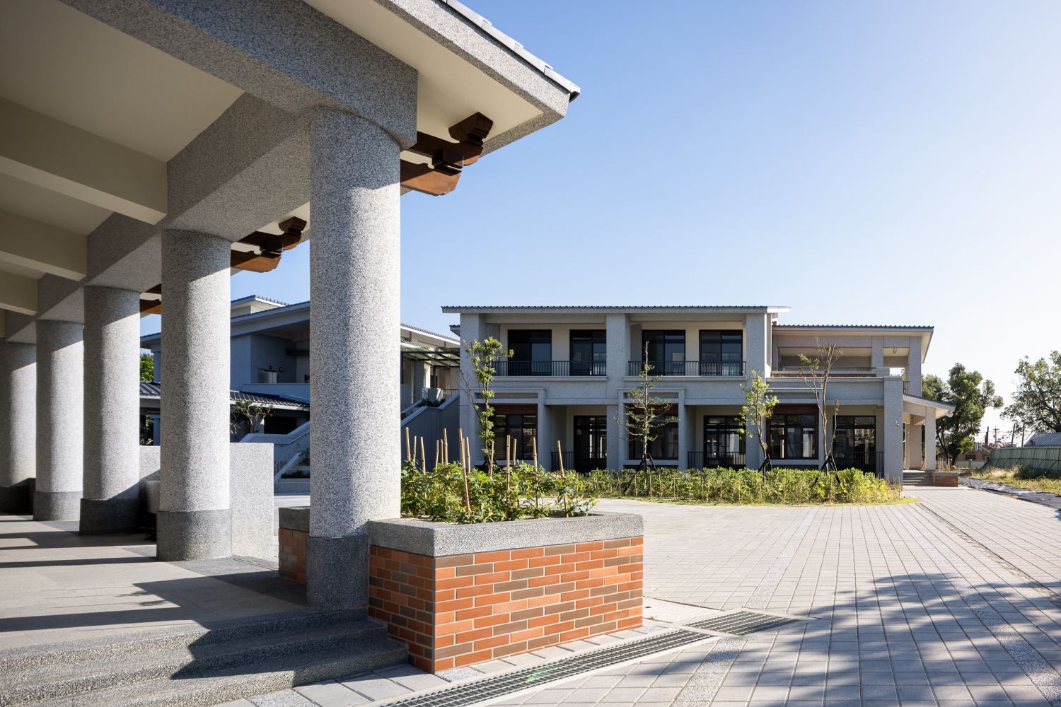合院式的配置,低樓層的設計,透過建築物量體軸線延續惠來厝的風水龍脈與聚落紋理,使的校園更緊密地與地方社區、居民聯繫在一起。